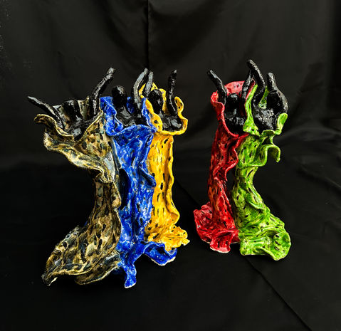 Het boetseren is het eerste uitdagende proces, maar nog spannender is het kleuren met engobe of glazuur…. Het eindresultaat is altijd weer een verrassing.